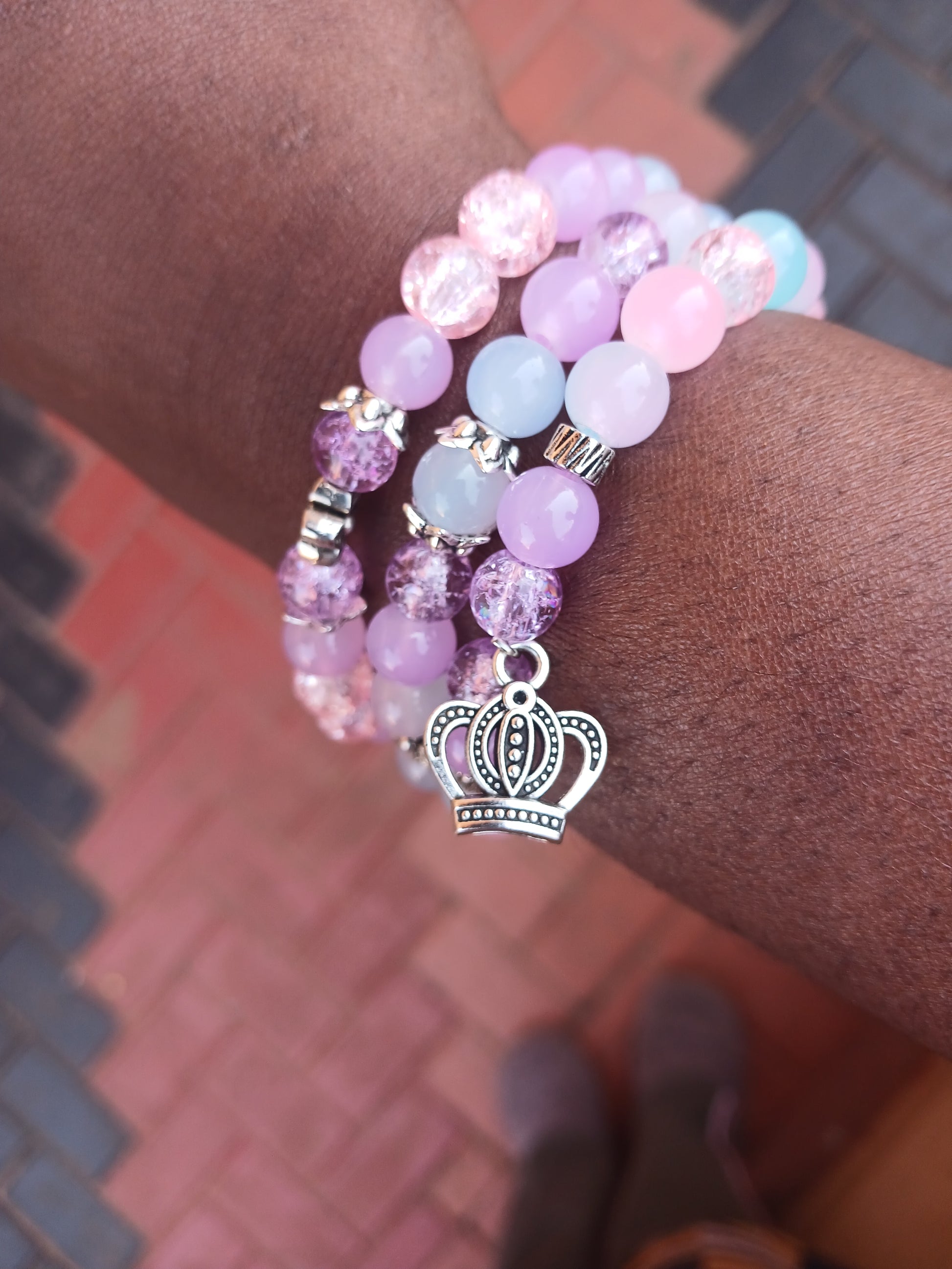 Dive into the serene beauty of our Radiant Pink Ocean Trio. This captivating set of three bracelets features a harmonious blend of pink, blue, and ombre colors, reminiscent of a tranquil seaside sunset. Each bracelet is adorned with a special crown charm, serving as a beautiful reminder that you are royalty and divinely anointed. Wear them individually for a subtle touch of elegance, or stack them together to create a vibrant and meaningful statement that celebrates your inner regal spirit.